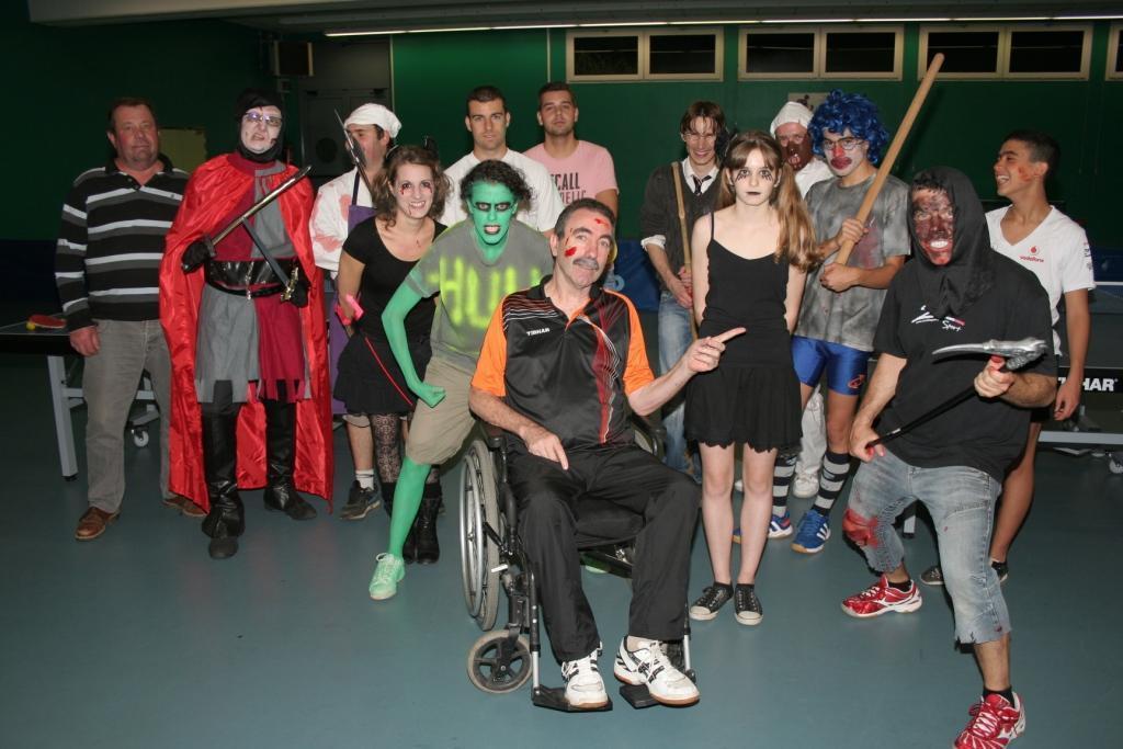 Jean-Pierre Barbet futur re-joueur du club au milieu de la photo, déguisé en t-shirt couleur citrouille !!!