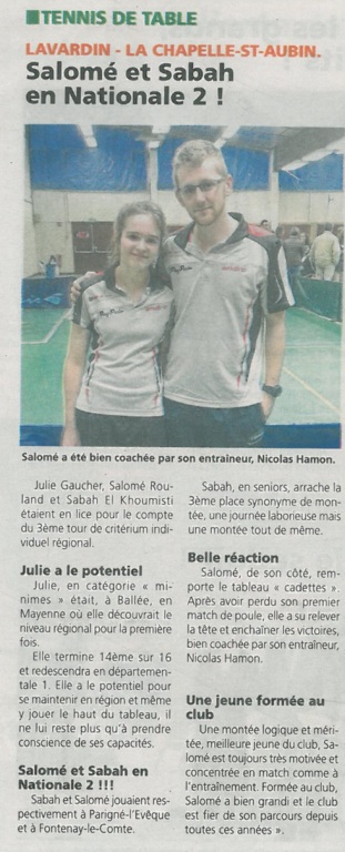 LA CHAPELLE ST AUBIN - LAVARDIN TENNIS DE TABLE