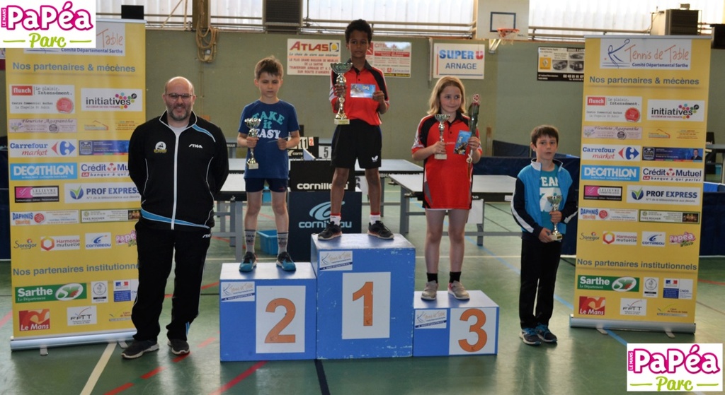 En poussins, nous avions Paul TALBOT pour nous représenter ! Et ce fût une superbe compétition pour lui puisque Paul est vice champion de Sarthe ! Il a perdu en finale contre un joueur de Sainte Jamme TT. Félicitations à lui et surtout continue comme ça on a hâte de voir la suite....