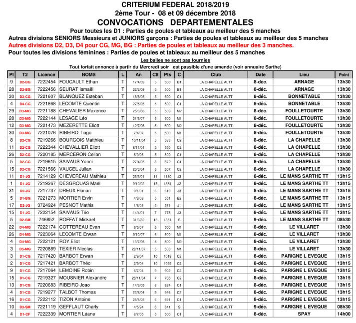 LA CHAPELLE ST AUBIN - LAVARDIN TENNIS DE TABLE