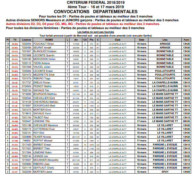 LA CHAPELLE ST AUBIN - LAVARDIN TENNIS DE TABLE