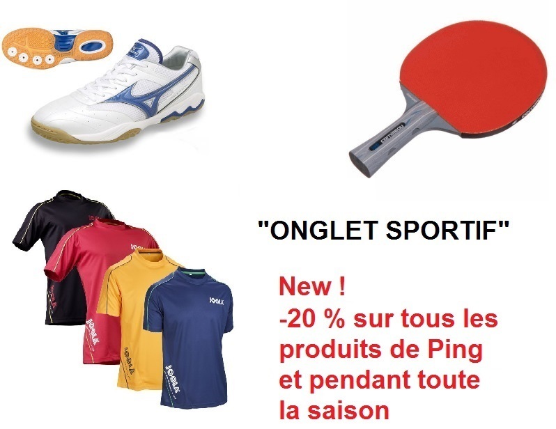 Grâce à notre partenaire "Ping-Passion" : Le club bénéficie de -20 % sur chaque article de leur site internet et sur tous les articles Wack Sport. Que ce soit sur les revêtements, les tee-shirts, les chaussures nous avons une bonne réduction... C'est pourquoi, nous proposons un formulaire (onglet "sportif") pour que chaque adhérent du club puisse en profiter. N'hésitez pas à demander conseils auprès de l'éducateur pour vos achats, il peut vous suggérer ou non certains produits par rapport à votre style de jeu, vos envies ect...