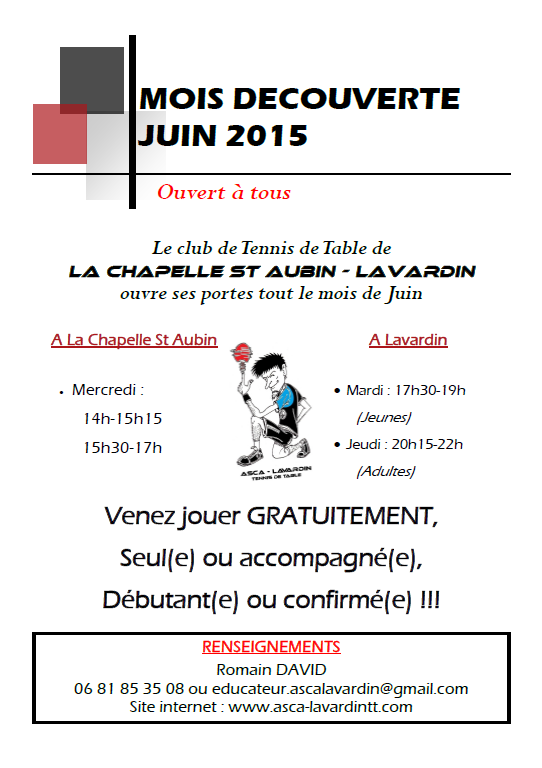 C'est le Mois Découverte au club ! Viens avec un copain pour lui faire découvrir notre sport sur un créneau prévu à cet effet. Ces créneaux sont gratuits et ouverts à tous tout le mois de Juin.