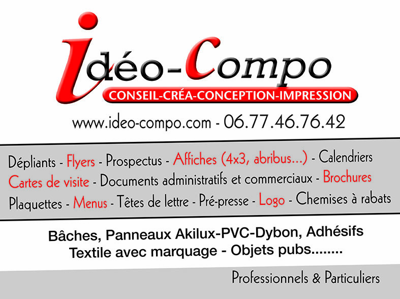 Merci à Patrick LANGEVIN gérant de l'entreprise Idéo-Compo de nous soutenir en devenant un partenaire du club ! Un panneau publicitaire est affiché dans notre salle spécifique