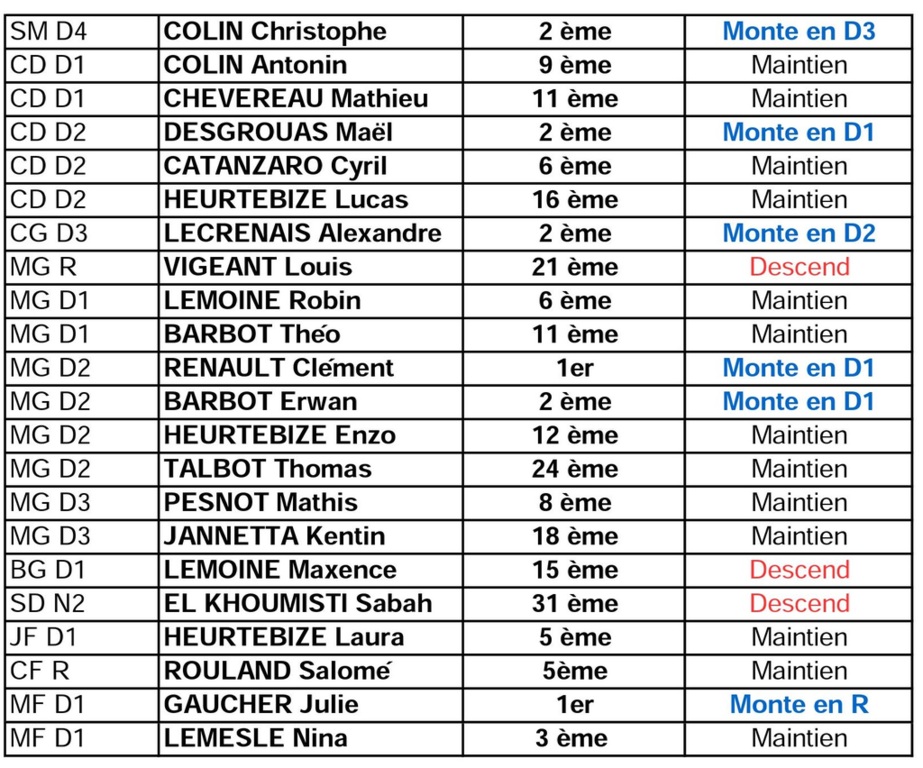 Ce week-end a eu lieu le 2 ème Tour de Critérium Fédéral, de bons résultats pour le club avec plusieurs montées !