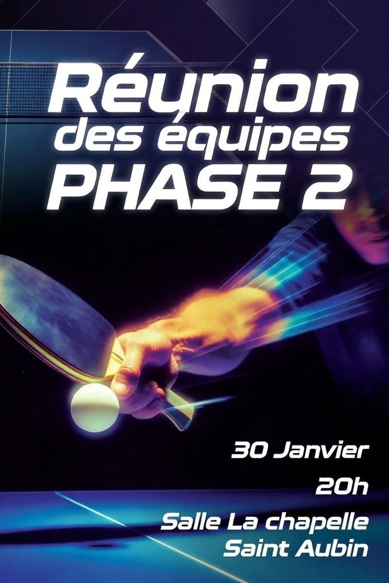 Le club La chapelle ALTT invite tous ses joueurs, entraîneurs et responsables d’équipe a la réunion de préparation de la PHASE 2 de la saison.