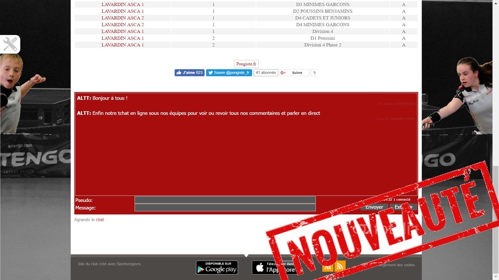 Un tchat en ligne est disponible dans la page "SPORTIF" et dans l'onglet "Les équipes" permettant ainsi de réagir en direct aux résultats des compétitions, de discuter ou tout simplement de voir et revoir les commentaires inscrits durant toute l'année !