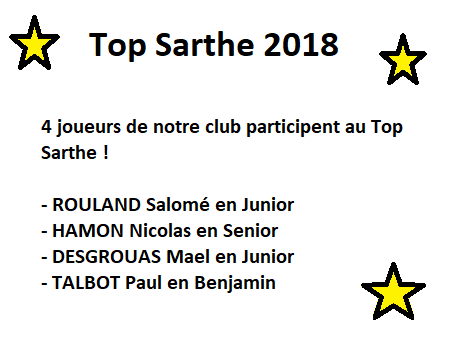 4 joueurs de notre club participent au Top Sarthe, réunissant les meilleurs de Sarthe dans chaque catégories,